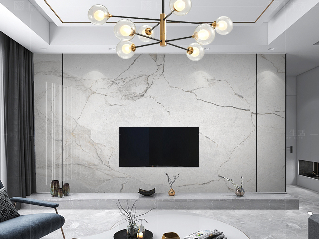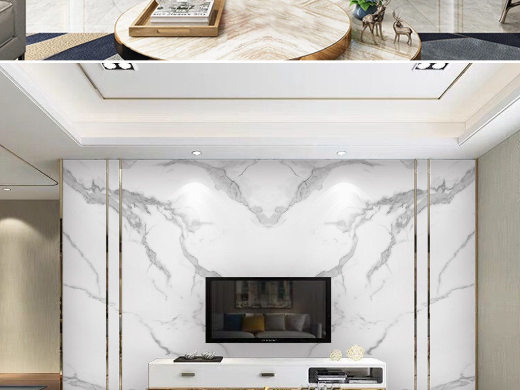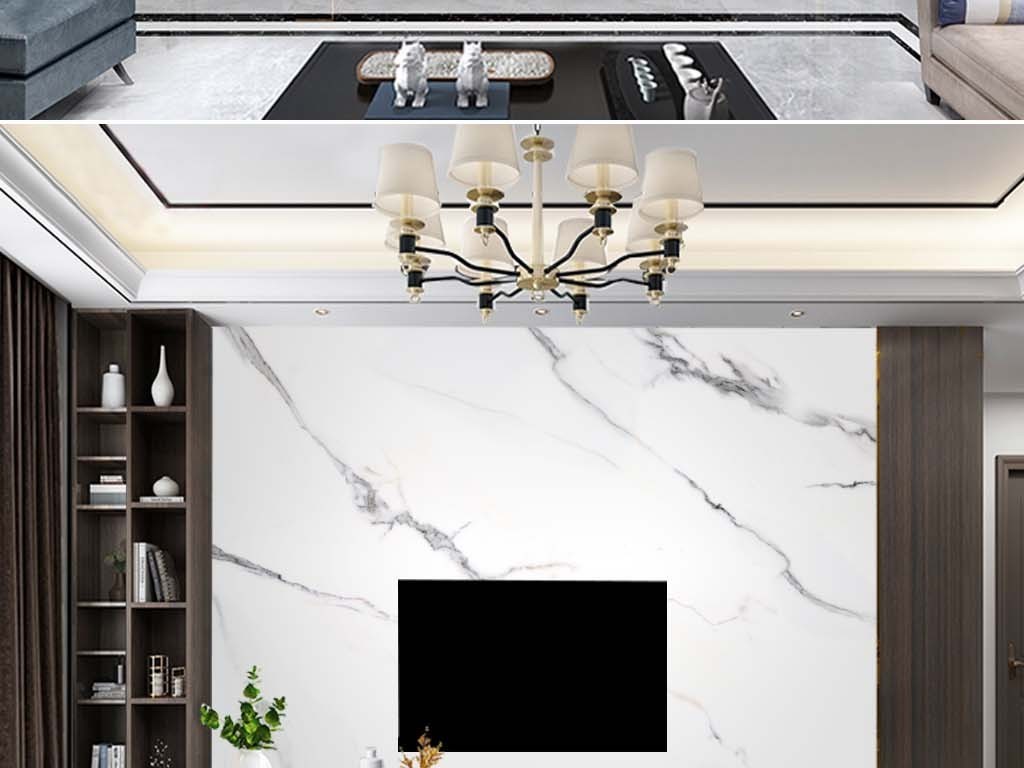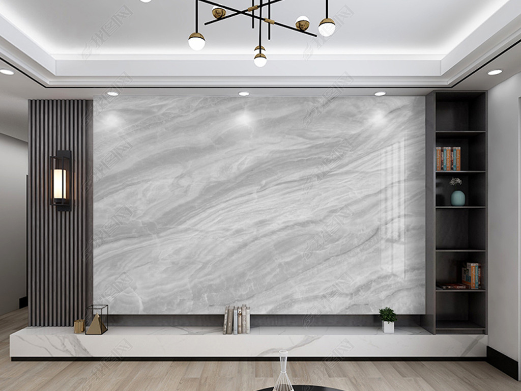 新款爵士白鱼肚白大理石纹轻奢电视背景墙