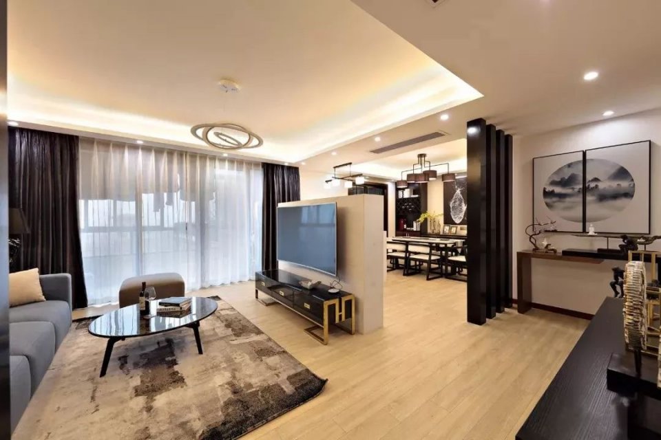 像这种户型进门就是餐厅客厅阳台相连,中间的电视墙怎么处理比较好?