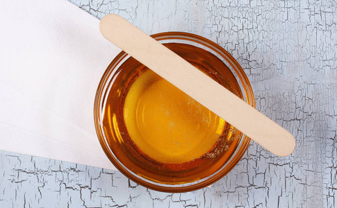 桌上有脱毛谎言的蜡蜂蜜是一个地方题词