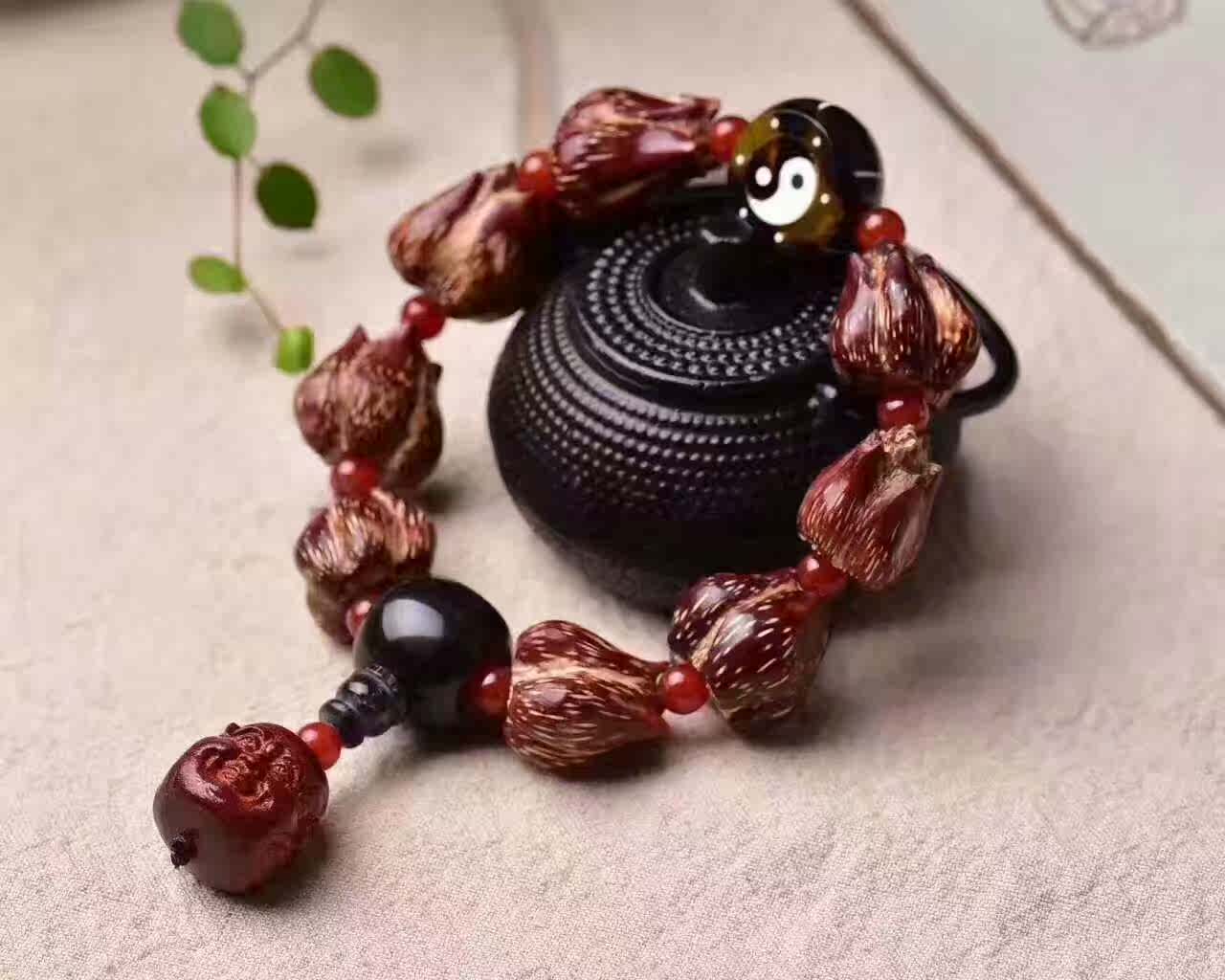 正宗印度老料铜管金钢鸡血红同料顺纹20小叶紫檀情侣手串