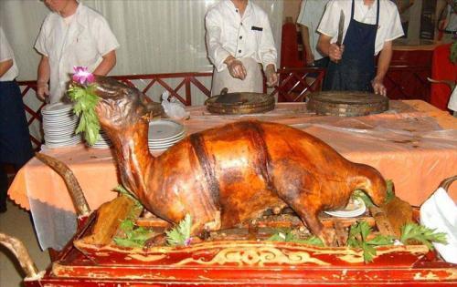 中国十大禁菜之炭烤乳羊,活烤母羊取其