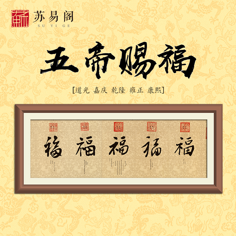 苏易阁】 五帝赐福清代帝王御笔五福图宣纸卧室床头玄关挂画国画装饰收藏