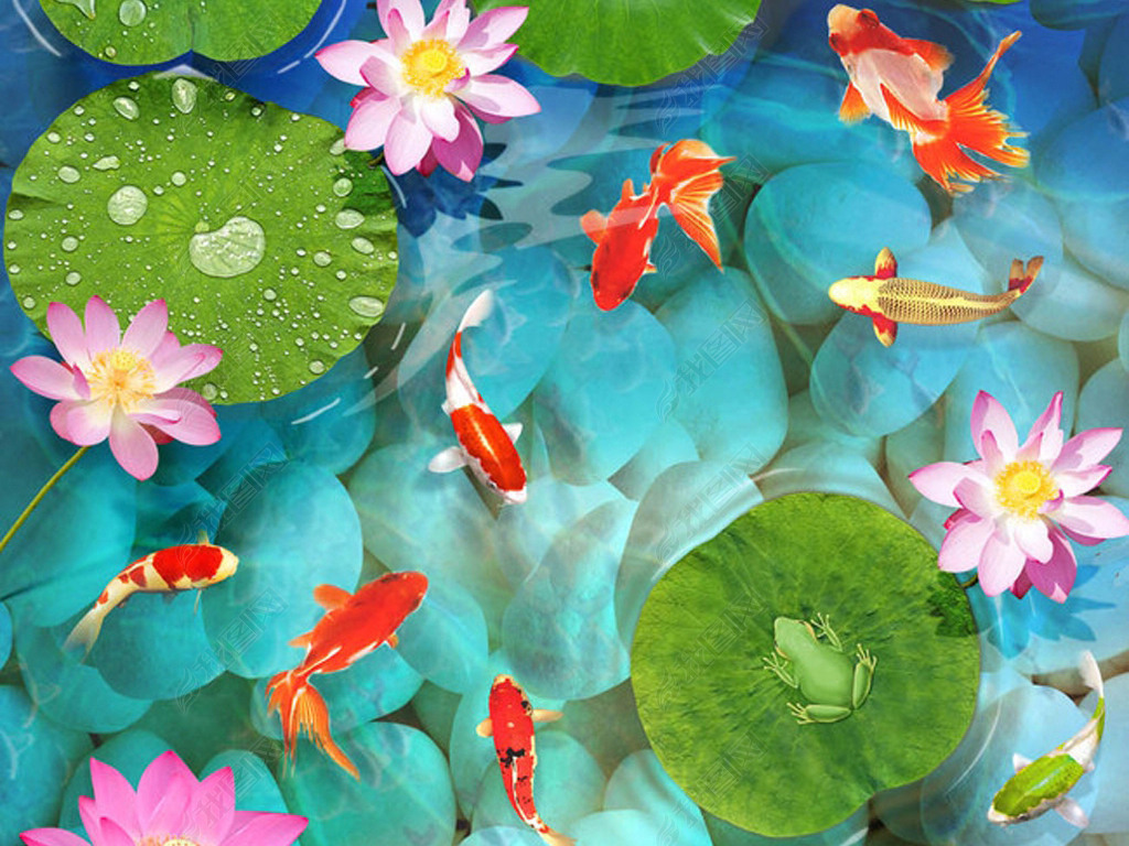 3D立体荷花鱼地板画