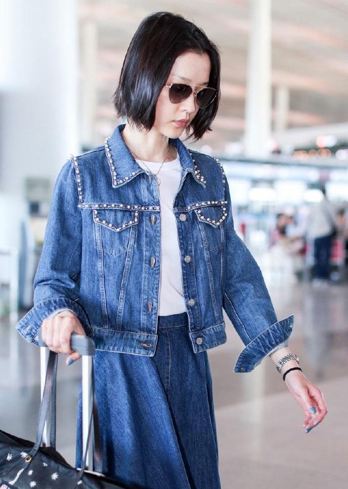 名模杜鹃现身机场, 身穿牛仔表情清冷, 网友