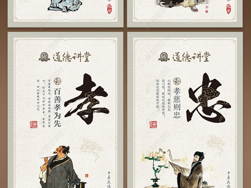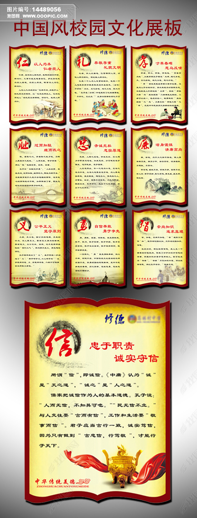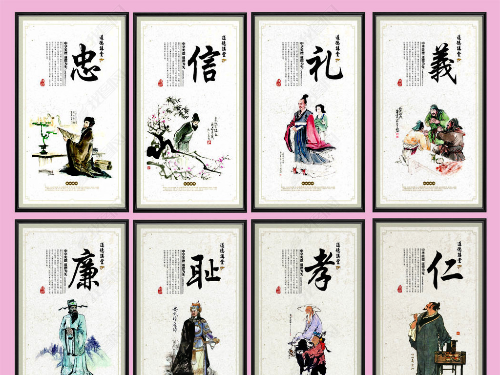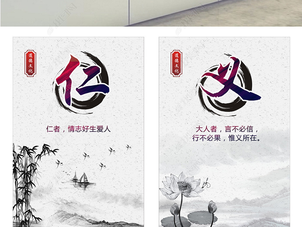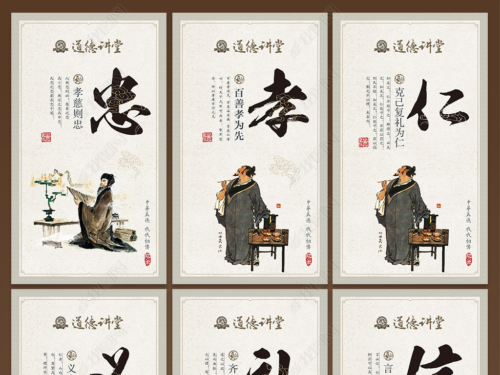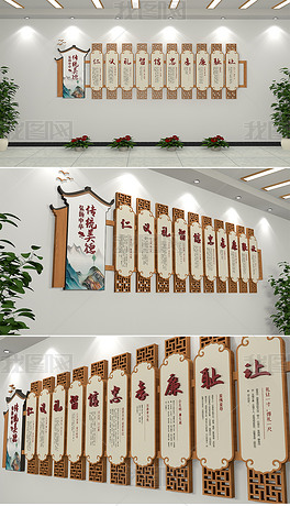 中国风仁义礼智信国学经典道德讲堂文化墙