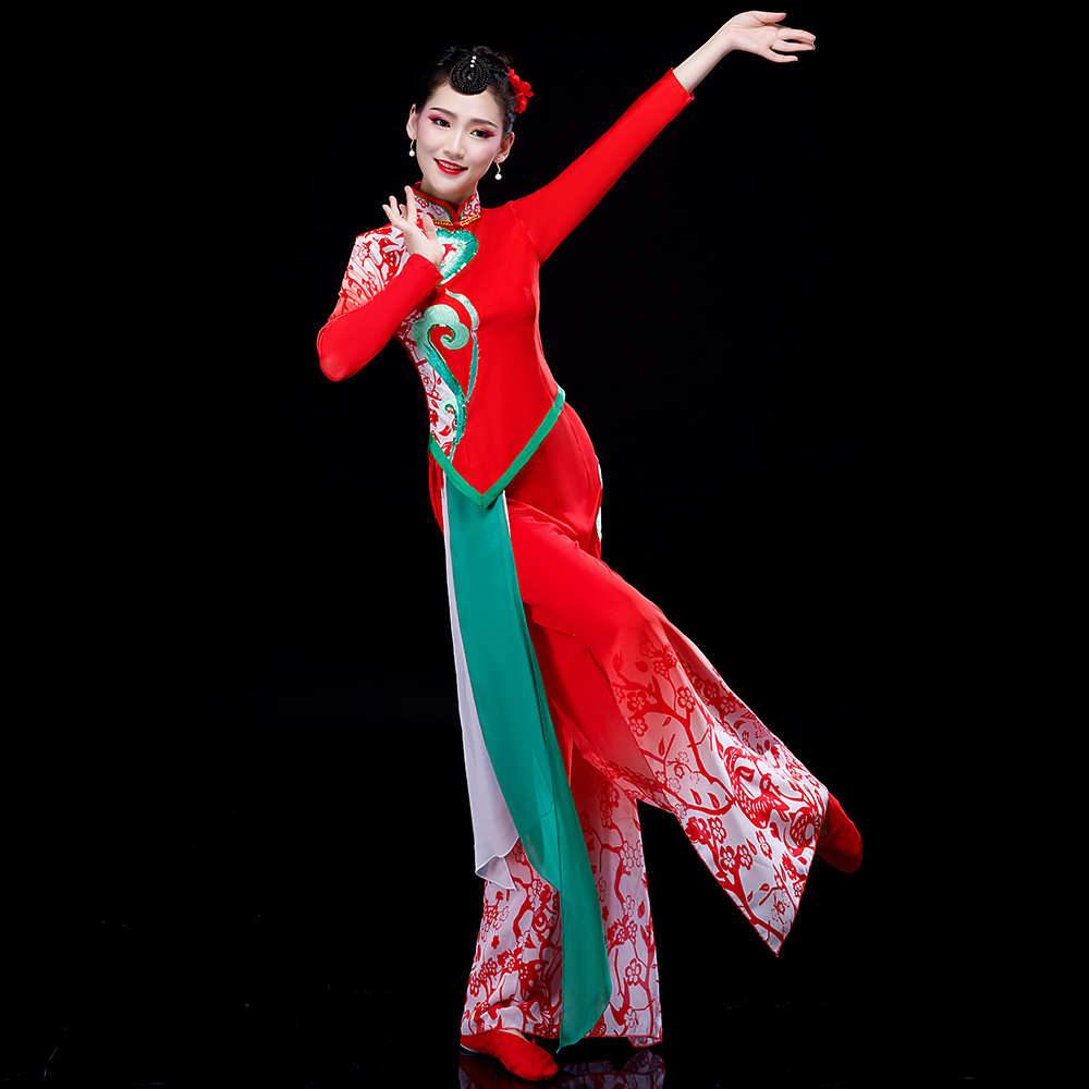 菲凡新娘秧歌腰鼓剪纸红色新款舞蹈演出民族舞台服装成人喜庆扇子