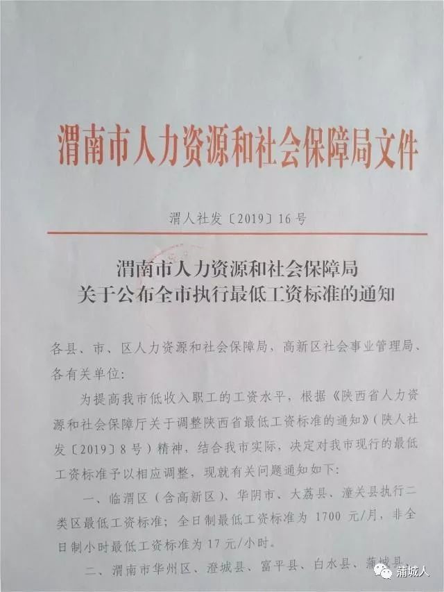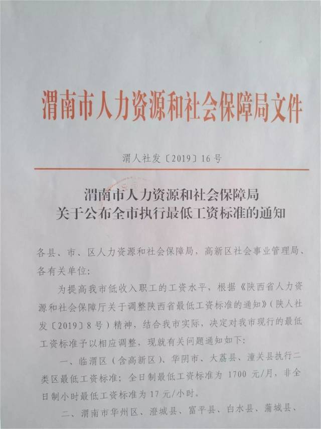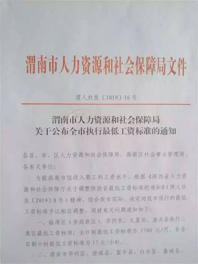 重磅!调整最低工资标准,大荔不得低于这个