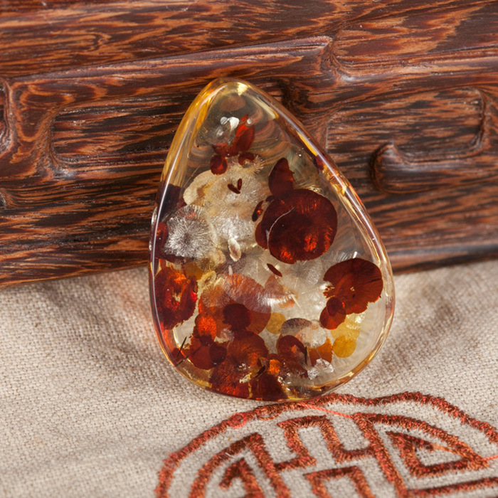 【天然 波罗的海琥珀精雕花珀吊坠水滴