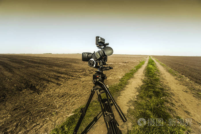 单反相机三脚架上。金属结构。采取照片、 电影或视频