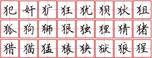 部首反犬旁,言字旁,单人旁,提手旁的写法