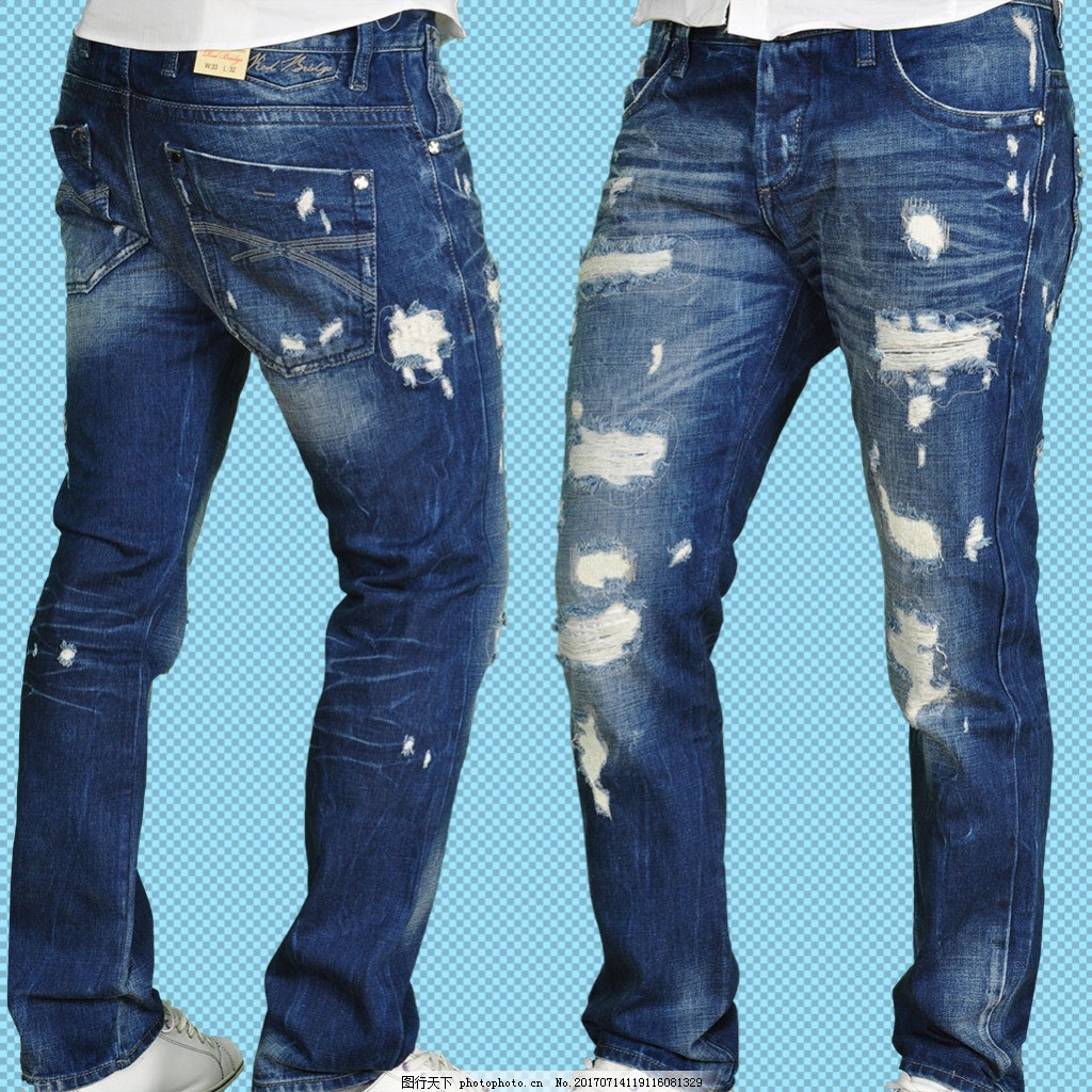蓝色破洞牛仔免抠png透明图层素材