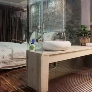 不吊顶更显高级,卧室用玻璃门隔断,真明智!