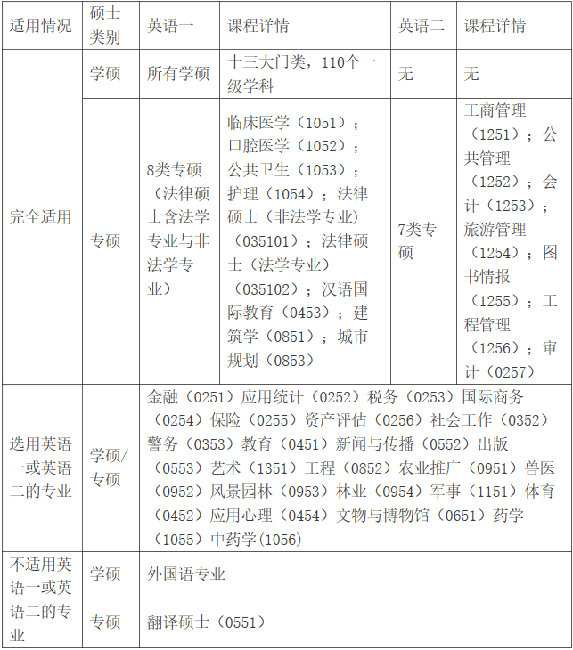 考研英语一和二对应的专业是哪些?他们