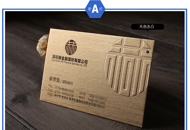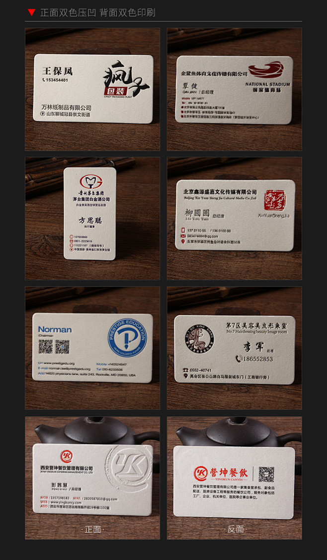 烫金商务加厚绵纸压痕浮雕名片加急定订
