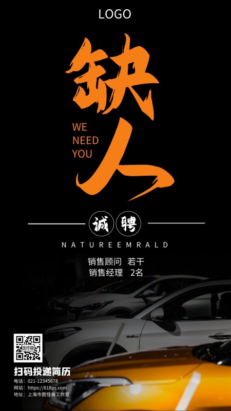 汽车人才招聘海报宣传手机营销海报