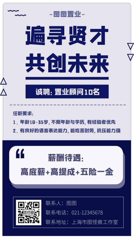 简约扁平房地产销售人才招聘手机海报