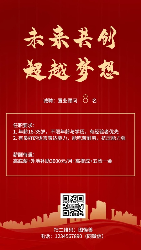 红金色大气房地产销售人才招聘海报