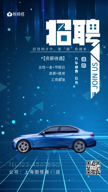蓝色科技粒子风汽车销售招聘广告视频
