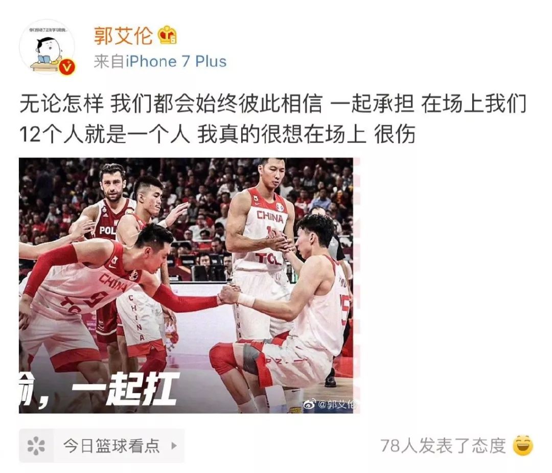 输,一起扛!中国男篮队员齐发声力挺周琦