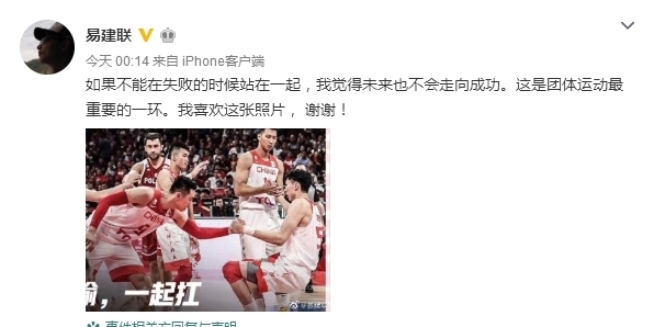 的担当!易建联深夜发声力挺周琦:输,一起扛!