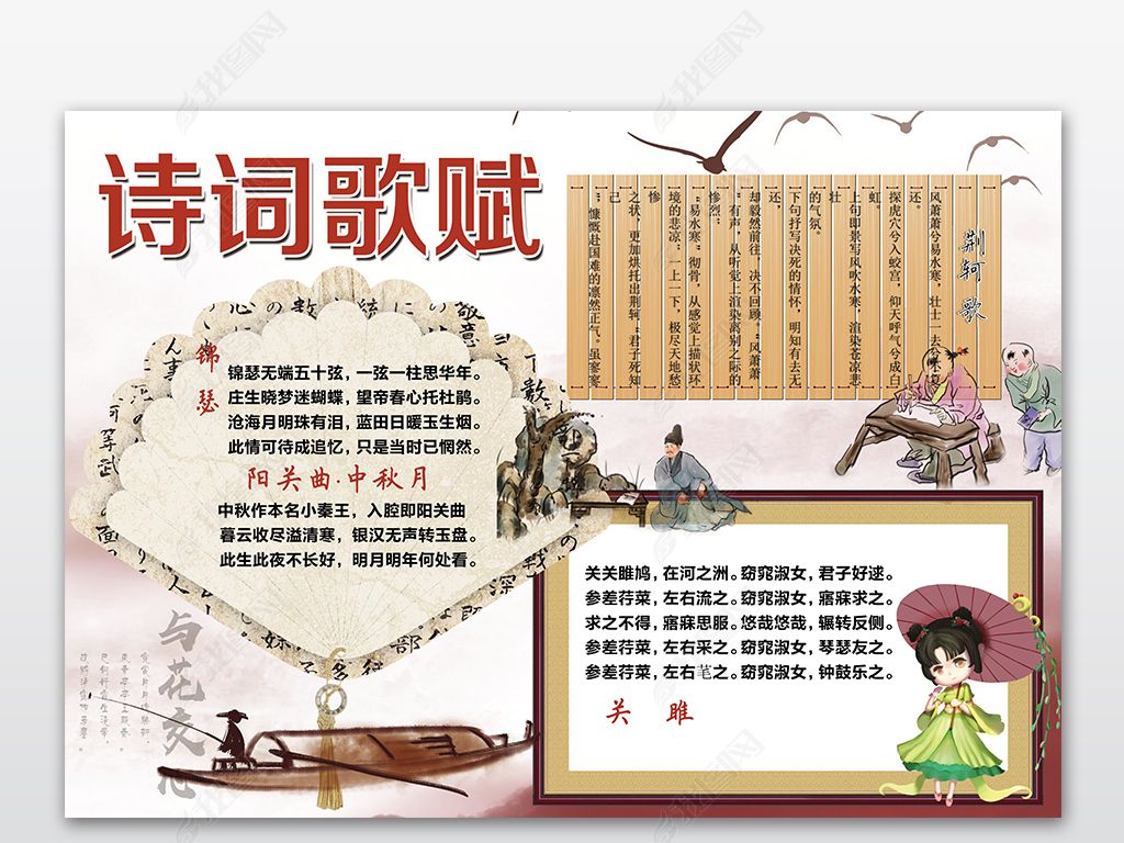 古风中国风诗词歌赋鉴赏电子小报手抄报word模板