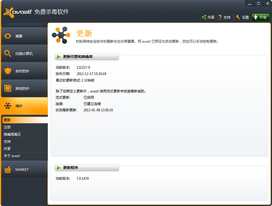avast!(来自捷克的强大杀毒软件)7.0.1474