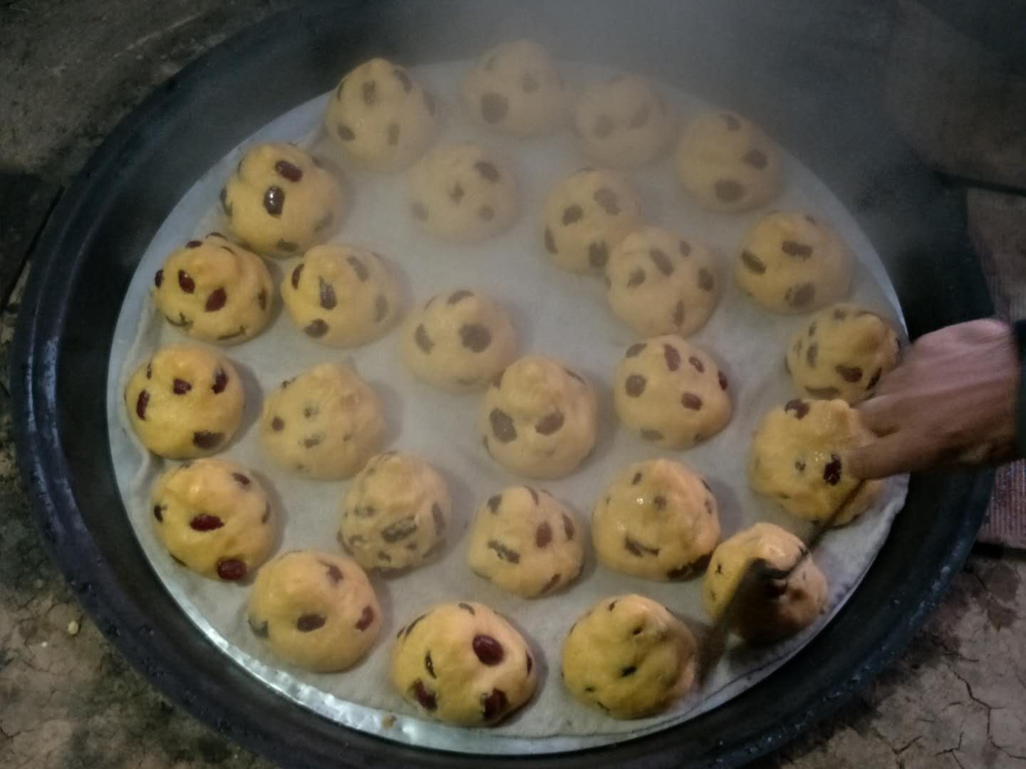 蒸年糕,吃一口,又热又粘,真叫一个好吃