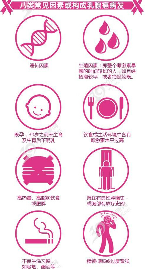 8大因素诱发乳腺癌 图解自检乳房两个方法