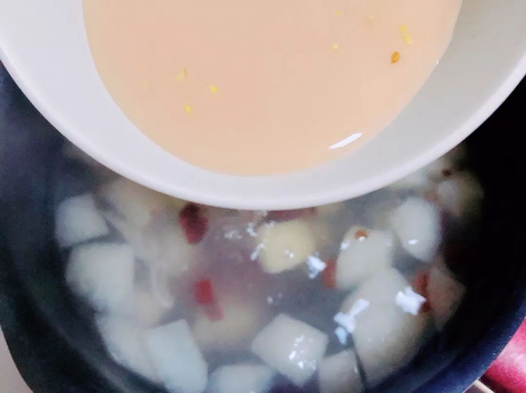一碗酸甜可口蔓越莓雪梨百合藕粉羹的做法
