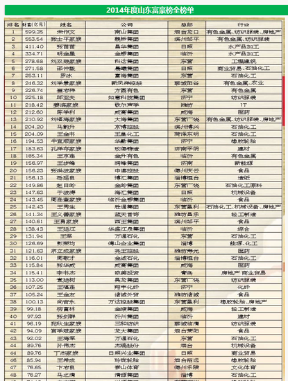 2014年度山东富豪榜全榜单新鲜出炉_频道-
