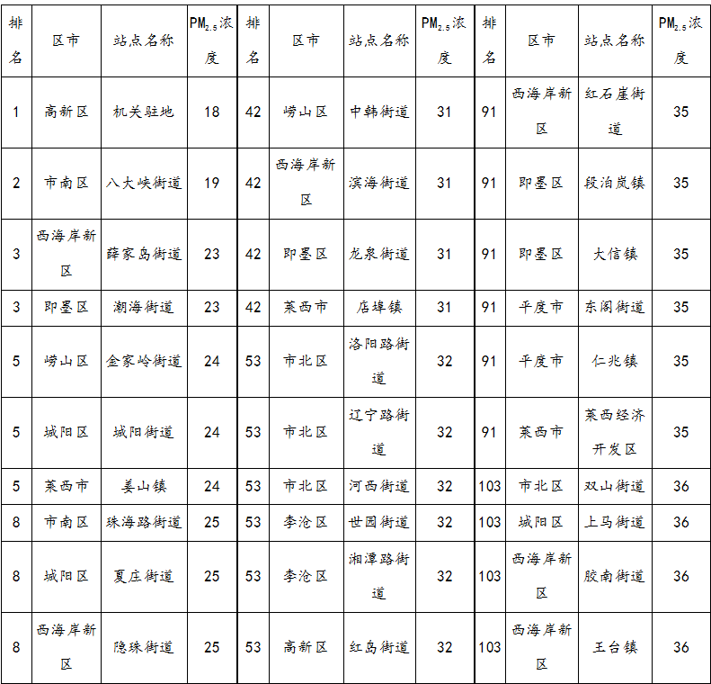 青岛141个镇街4月环境空气质量\"出炉\"