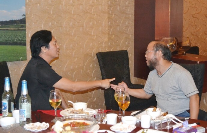 陈佩斯与腾格尔聚会,2人开心喝酒划拳,光头
