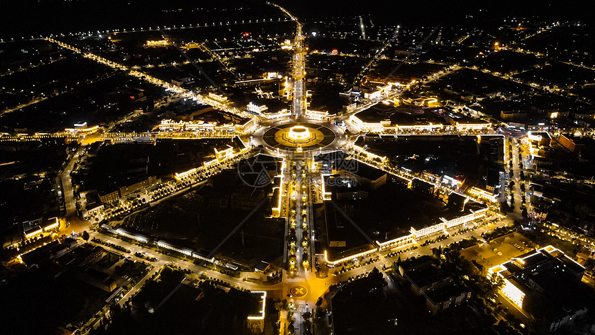 新疆伊犁特克斯县八卦城夜景航拍全景