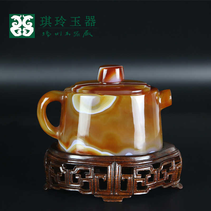 扬州玉器厂玉缘天然红玛瑙壶工艺摆件中国