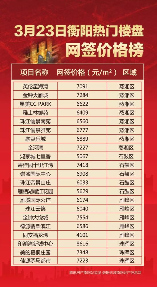 每日房价:衡阳热门楼盘网签均价播报(10.21)