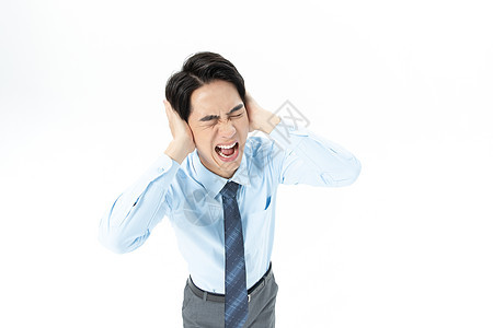 商人坐在沙发上双手放在头的两侧痛苦的表情