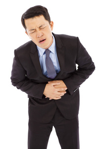 美丽的西班牙裔女人痛苦的表情,抱腹月经