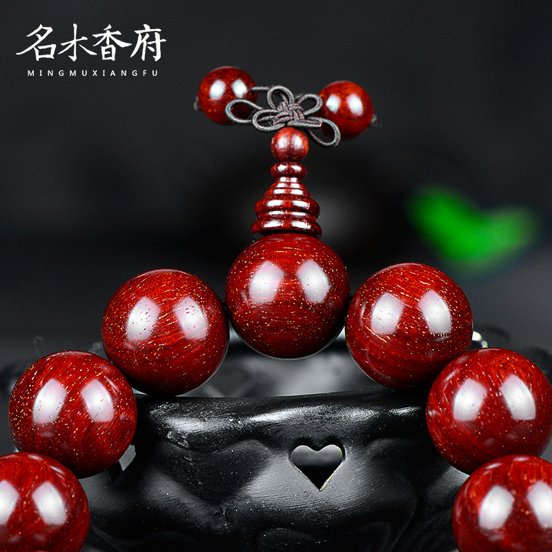 名木香府老料小叶紫檀带金星手串豆瓣影