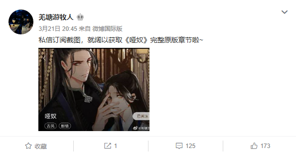 书耽网作品收割流量,漫画《哑奴》大受欢迎