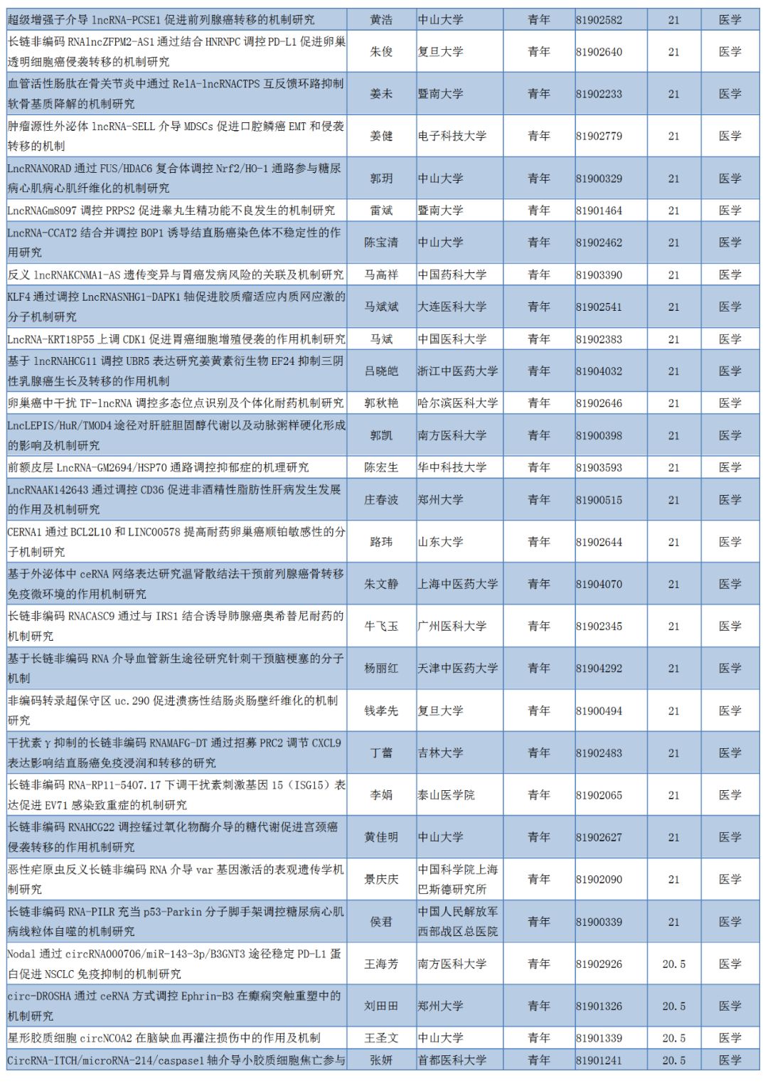 2019年国自然之\"非编码RNA\"--项目详细统计