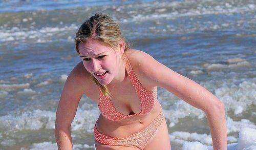 实拍战斗民族美女冰天雪地穿比基尼游泳,