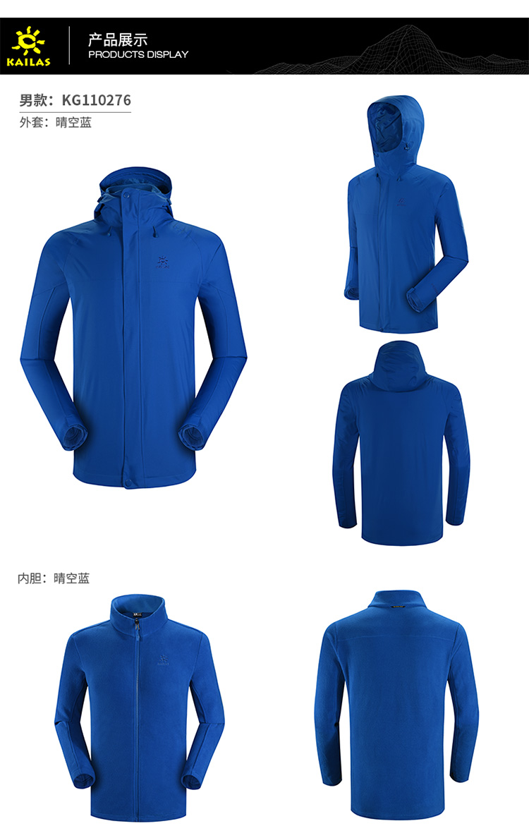 KAILAS\/凯乐石男款连帽三合一冲锋衣