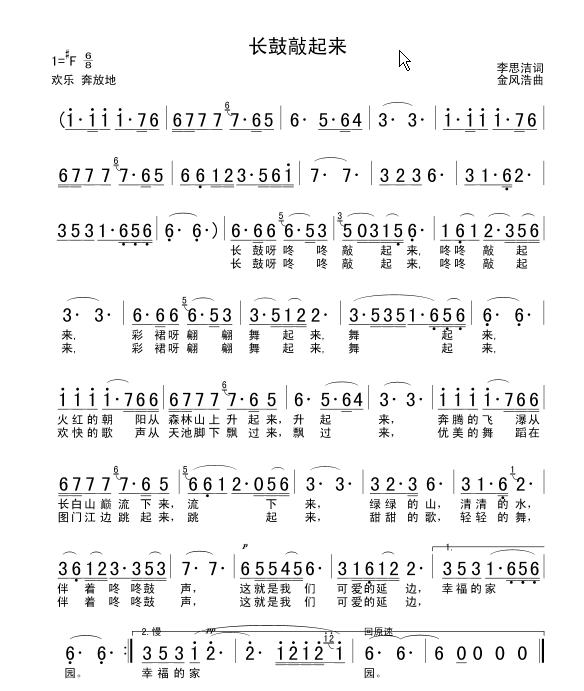 民族歌曲,《长鼓敲起来》钢琴伴奏谱,最好F