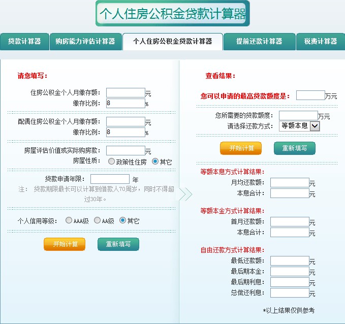 珠海公积金贷款计算器(提前还款)- 珠海本地