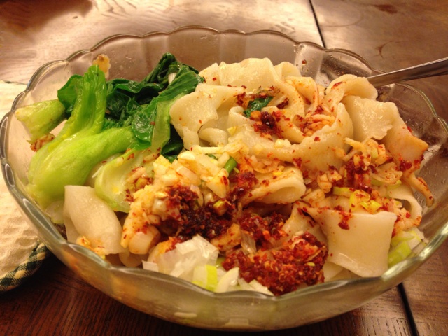 自家做的油泼面,满满的辣椒一大勺热油泼