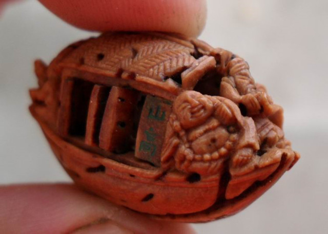 市民雕橄榄核再现东坡泛舟赤壁 核雕窗户可开关_新闻台_中国网络电视台