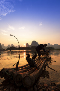 在中国使用 tra 捕鱼船与鸬鹚鸟,传统