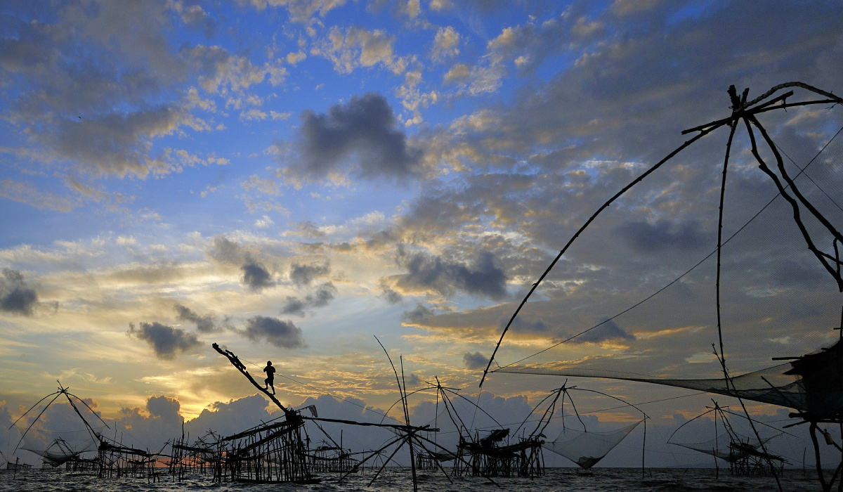 撒网捕鱼是一门传统技术,需要掌握一定的