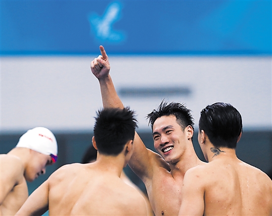 图文:青奥会游泳赛收官 何健彬挥臂打水