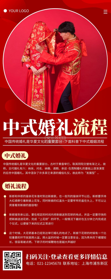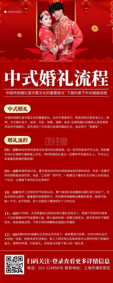 红色喜庆-喜庆红色中式婚礼流程宣传营销长图在线图片制作-图怪兽